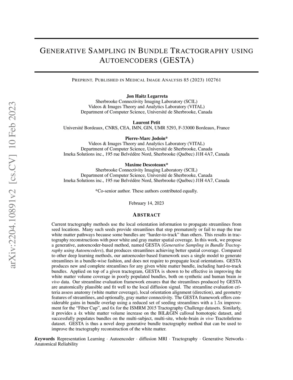 Generative Sampling in Bundle Tractography using Autoencoders (GESTA)