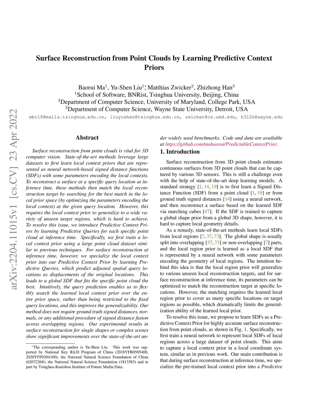 Surface Reconstruction from Point Clouds by Learning Predictive Context