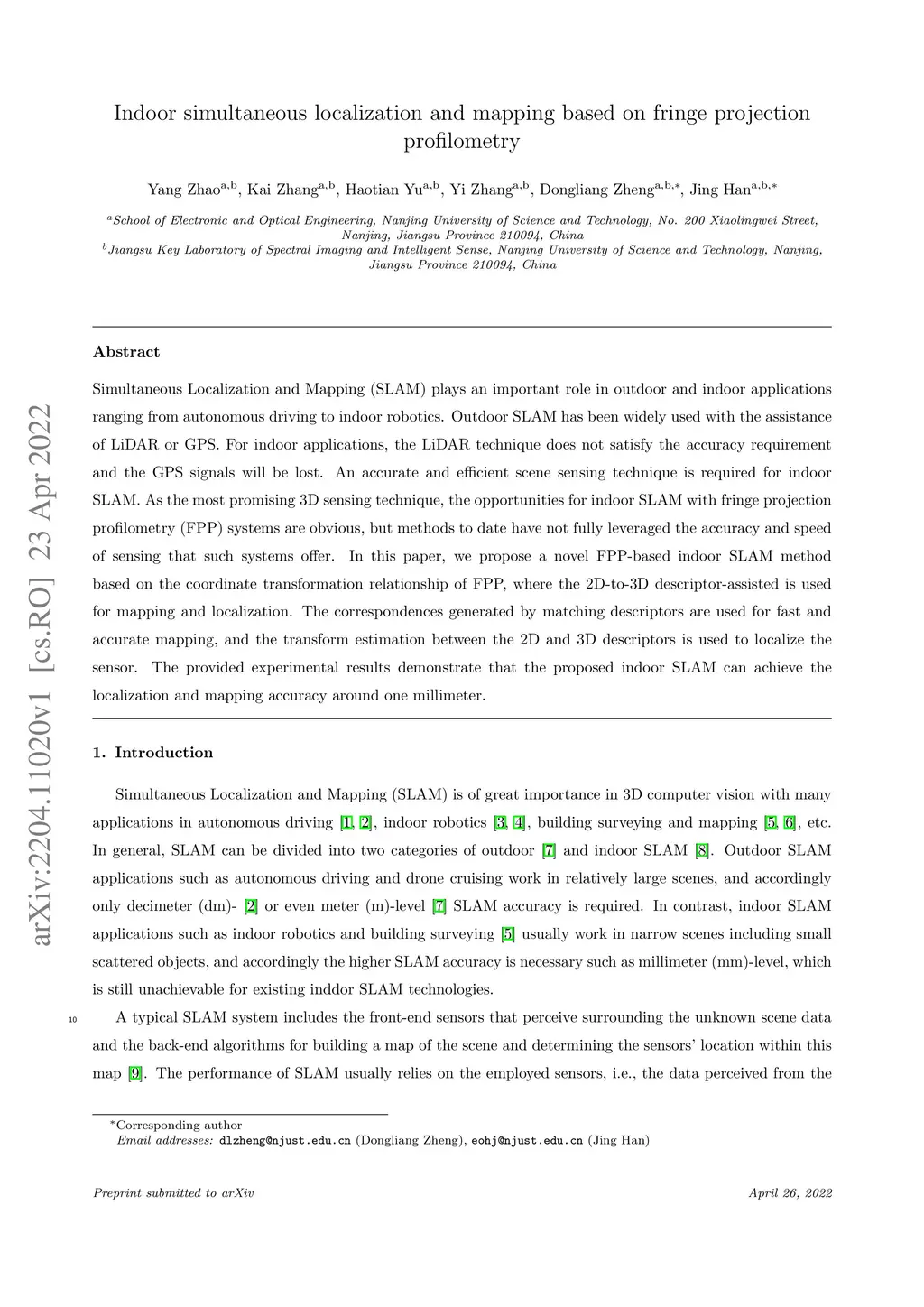 Simultaneous Localization and Mapping (SLAM) plays an important role in outdoor and indoor applications ranging from autonomous driving to indoor robotics. Outdoor SLAM has been widely used with the assistance of LiDAR or GPS. For indoor applications, the LiDAR technique does not satisfy the accuracy requirement and the GPS signals will be lost. An accurate and efficient scene sensing technique is required for indoor SLAM. As the most promising 3D sensing technique, the opportunities for indoor SLAM with fringe projection profilometry (FPP) systems are obvious, but methods to date have not fully leveraged the accuracy and speed of sensing that such systems offer. In this paper, we propose a novel FPP-based indoor SLAM method based on the coordinate transformation relationship of FPP, where the 2D-to-3D descriptor-assisted is used for mapping and localization. The correspondences generated by matching descriptors are used for fast and accurate mapping, and the transform estimation between the 2D and 3D descriptors is used to localize the sensor. The provided experimental results demonstrate that the proposed indoor SLAM can achieve the localization and mapping accuracy around one millimeter.
