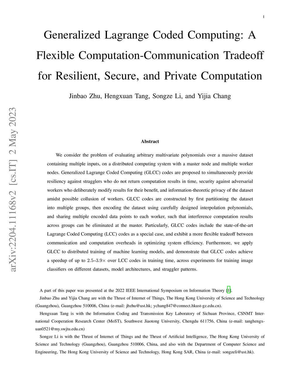 We consider the problem of evaluating arbitrary multivariate polynomials over a massive dataset containing multiple inputs, on a distributed computing system with a master node and multiple worker nodes. Generalized Lagrange Coded Computing (GLCC) codes are proposed to simultaneously provide resiliency against stragglers who do not return computation results in time, security against adversarial workers who deliberately modify results for their benefit, and information-theoretic privacy of the dataset amidst possible collusion of workers. GLCC codes are constructed by first partitioning the dataset into multiple groups, then encoding the dataset using carefully designed interpolation polynomials, and sharing multiple encoded data points to each worker, such that interference computation results across groups can be eliminated at the master. Particularly, GLCC codes include the state-of-the-art Lagrange Coded Computing (LCC) codes as a special case, and exhibit a more flexible tradeoff between communication and computation overheads in optimizing system efficiency. Furthermore, we apply GLCC to distributed training of machine learning models, and demonstrate that GLCC codes achieve a speedup of up to over LCC codes in training time, across experiments for training image classifiers on different datasets, model architectures, and straggler patterns.