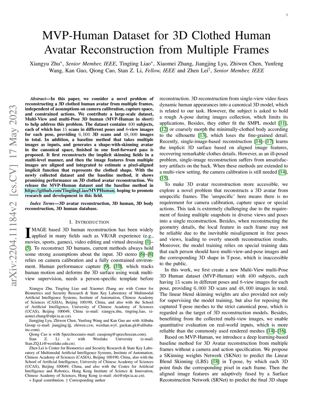 MVP-Human Dataset for 3D Human Avatar Reconstruction from Unconstrained