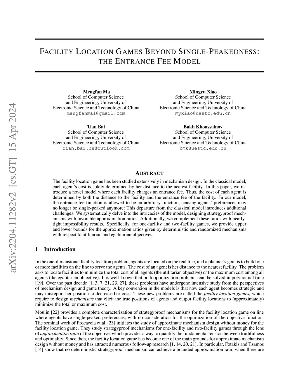 The facility location game has been studied extensively in mechanism design. In the classical model, each agent's cost is solely determined by her distance to the nearest facility. In this paper, we introduce a novel model where each facility charges an entrance fee. Thus, the cost of each agent is determined by both the distance to the facility and the entrance fee of the facility. In our model, the entrance fee function is allowed to be an arbitrary function, causing agents' preferences may no longer be single-peaked anymore: This departure from the classical model introduces additional challenges. We systematically delve into the intricacies of the model, designing strategyproof mechanisms with favorable approximation ratios. Additionally, we complement these ratios with nearly-tight impossibility results. Specifically, for one-facility and two-facility games, we provide upper and lower bounds for the approximation ratios given by deterministic and randomized mechanisms with respect to utilitarian and egalitarian objectives.