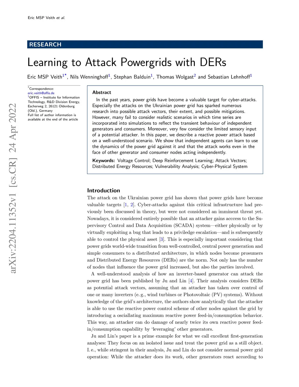 In the past years, power grids have become a valuable target for cyber-attacks. Especially the attacks on the Ukrainian power grid has sparked numerous research into possible attack vectors, their extent, and possible mitigations. However, many fail to consider realistic scenarios in which time series are incorporated into simulations to reflect the transient behaviour of independent generators and consumers. Moreover, very few consider the limited sensory input of a potential attacker. In this paper, we describe a reactive power attack based on a well-understood scenario. We show that independent agents can learn to use the dynamics of the power grid against it and that the attack works even in the face of other generator and consumer nodes acting independently.