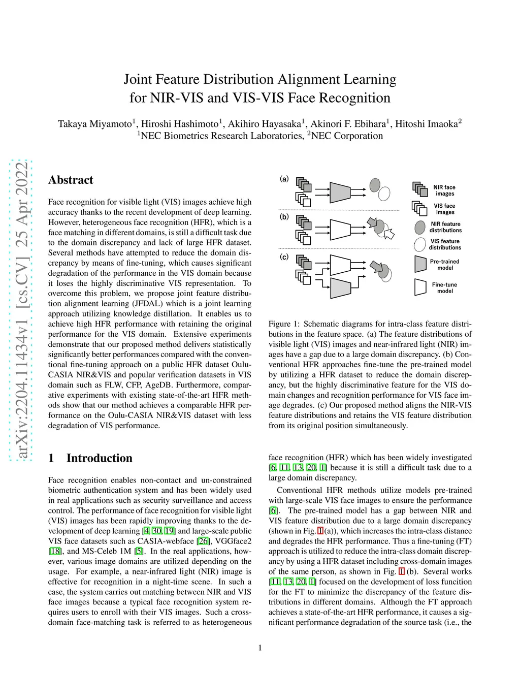 Joint Feature Distribution Alignment Learning for NIR-VIS and VIS-VIS