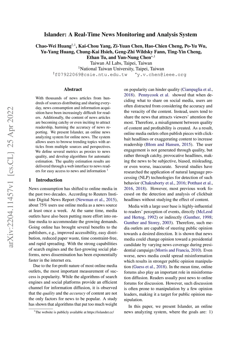 Islander: A Real-Time News Monitoring and Analysis System
