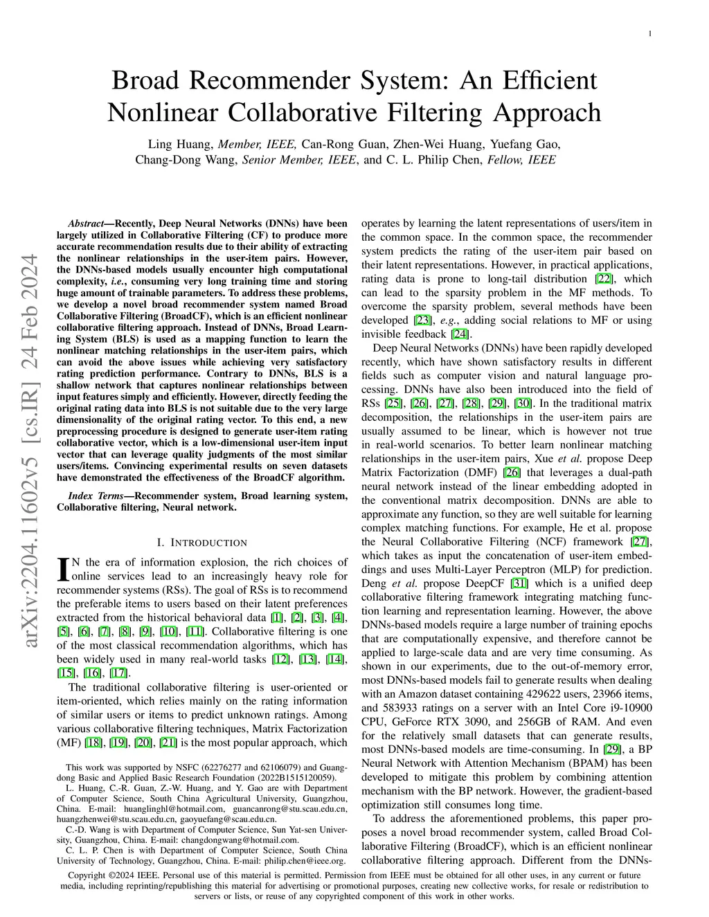 Broad Recommender System: An Efficient Nonlinear Collaborative Filtering