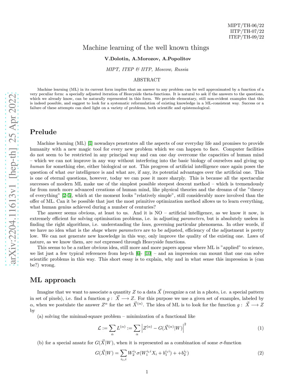 Machine learning (ML) in its current form implies that an answer to any problem can be well approximated by a function of a very peculiar form: a specially adjusted iteration of Heavyside theta-functions. It is natural to ask if the answers to the questions, which we already know, can be naturally represented in this form. We provide elementary, still non-evident examples that this is indeed possible, and suggest to look for a systematic reformulation of existing knowledge in a ML-consistent way. Success or a failure of these attempts can shed light on a variety of problems, both scientific and epistemological.