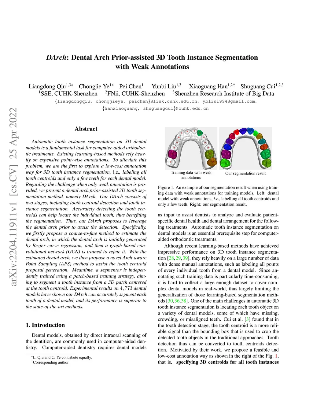 DArch: Dental Arch Prior-assisted 3D Tooth Instance Segmentation