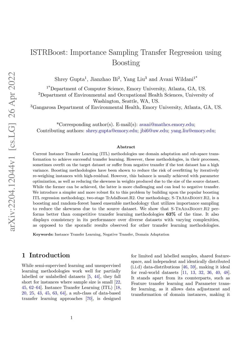 Current Instance Transfer Learning (ITL) methodologies use domain adaptation and sub-space transformation to achieve successful transfer learning. However, these methodologies, in their processes, sometimes overfit on the target dataset or suffer from negative transfer if the test dataset has a high variance. Boosting methodologies have been shown to reduce the risk of overfitting by iteratively re-weighing instances with high-residual. However, this balance is usually achieved with parameter optimization, as well as reducing the skewness in weights produced due to the size of the source dataset. While the former can be achieved, the latter is more challenging and can lead to negative transfer. We introduce a simpler and more robust fix to this problem by building upon the popular boosting ITL regression methodology, two-stage TrAdaBoost.R2. Our methodology,~\us{}, is a boosting and random-forest based ensemble methodology that utilizes importance sampling to reduce the skewness due to the source dataset. We show that~\us{}~performs better than competitive transfer learning methodologies of the time. It also displays consistency in its performance over diverse datasets with varying complexities, as opposed to the sporadic results observed for other transfer learning methodologies.