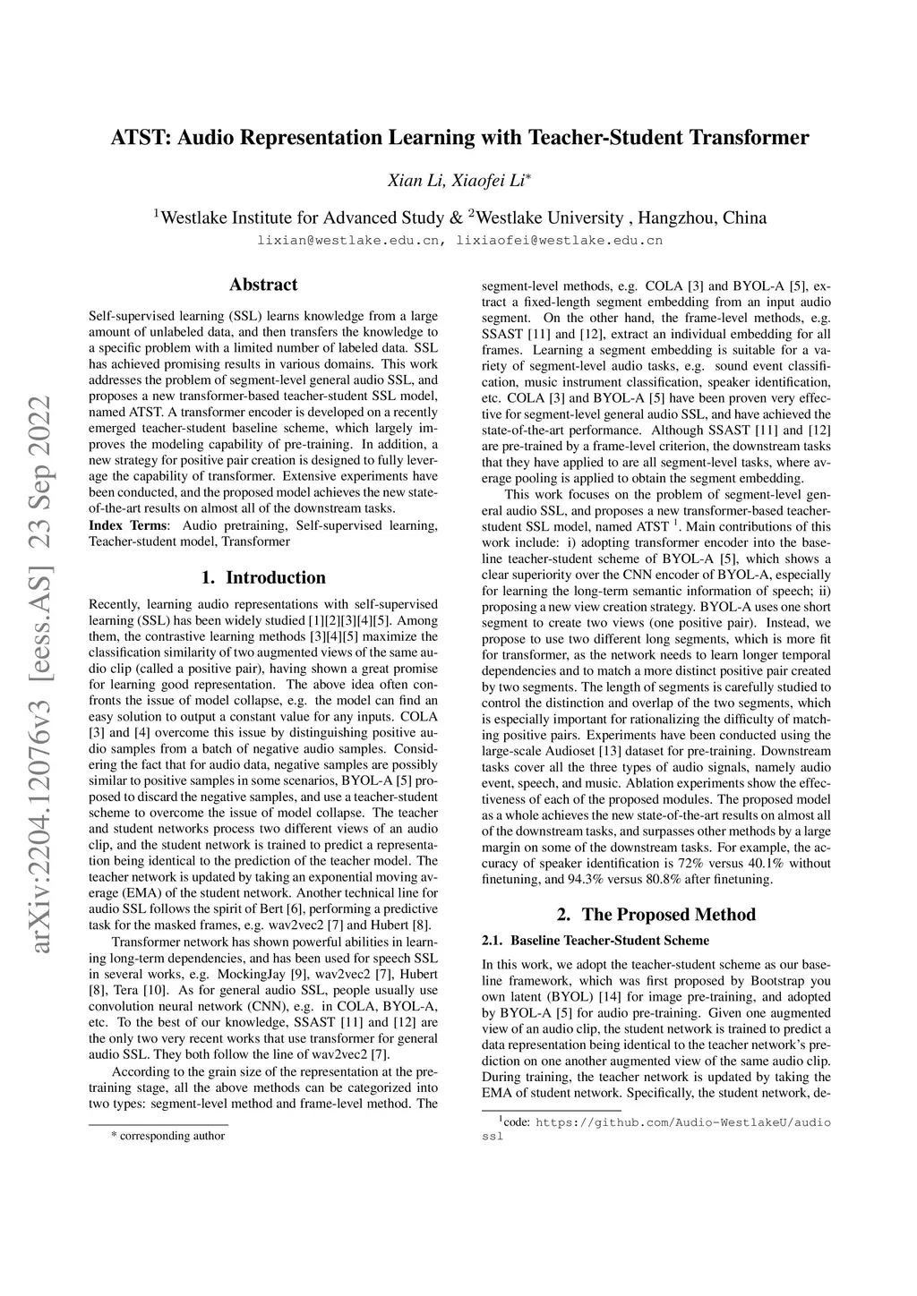 ATST: Audio Representation Learning with Teacher-Student Transformer