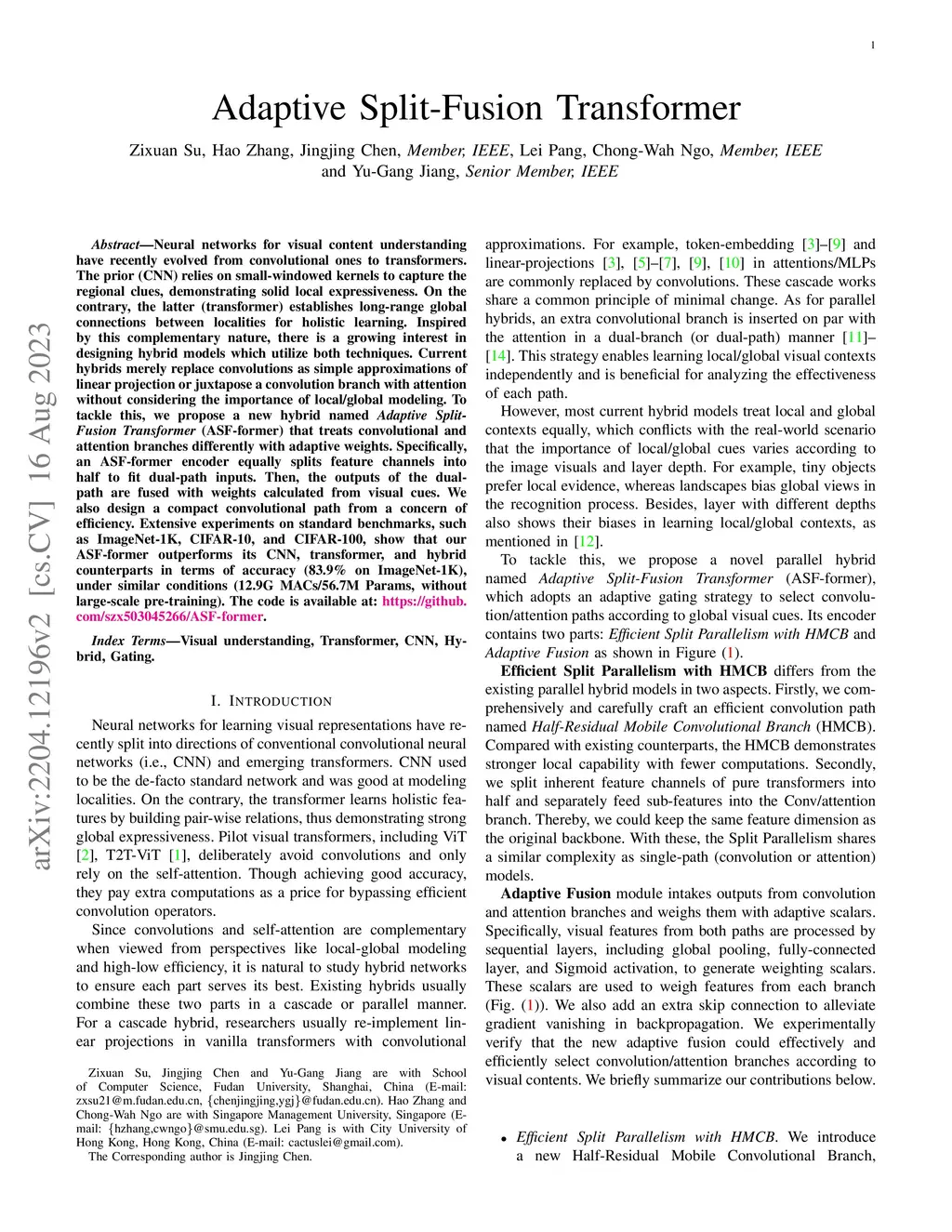 Adaptive Split-Fusion Transformer
