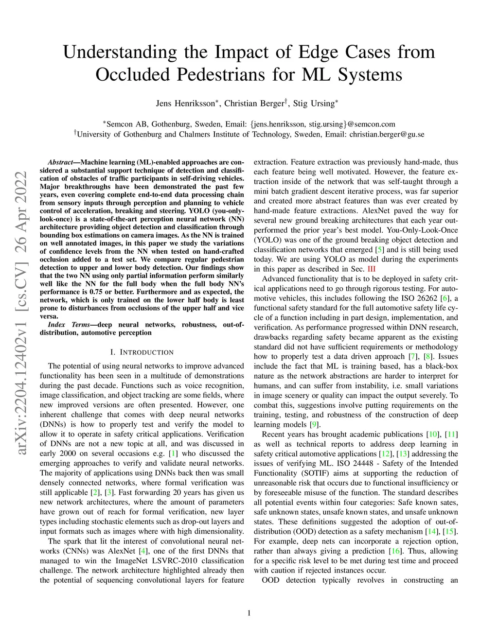 Understanding the Impact of Edge Cases from Occluded Pedestrians for ML