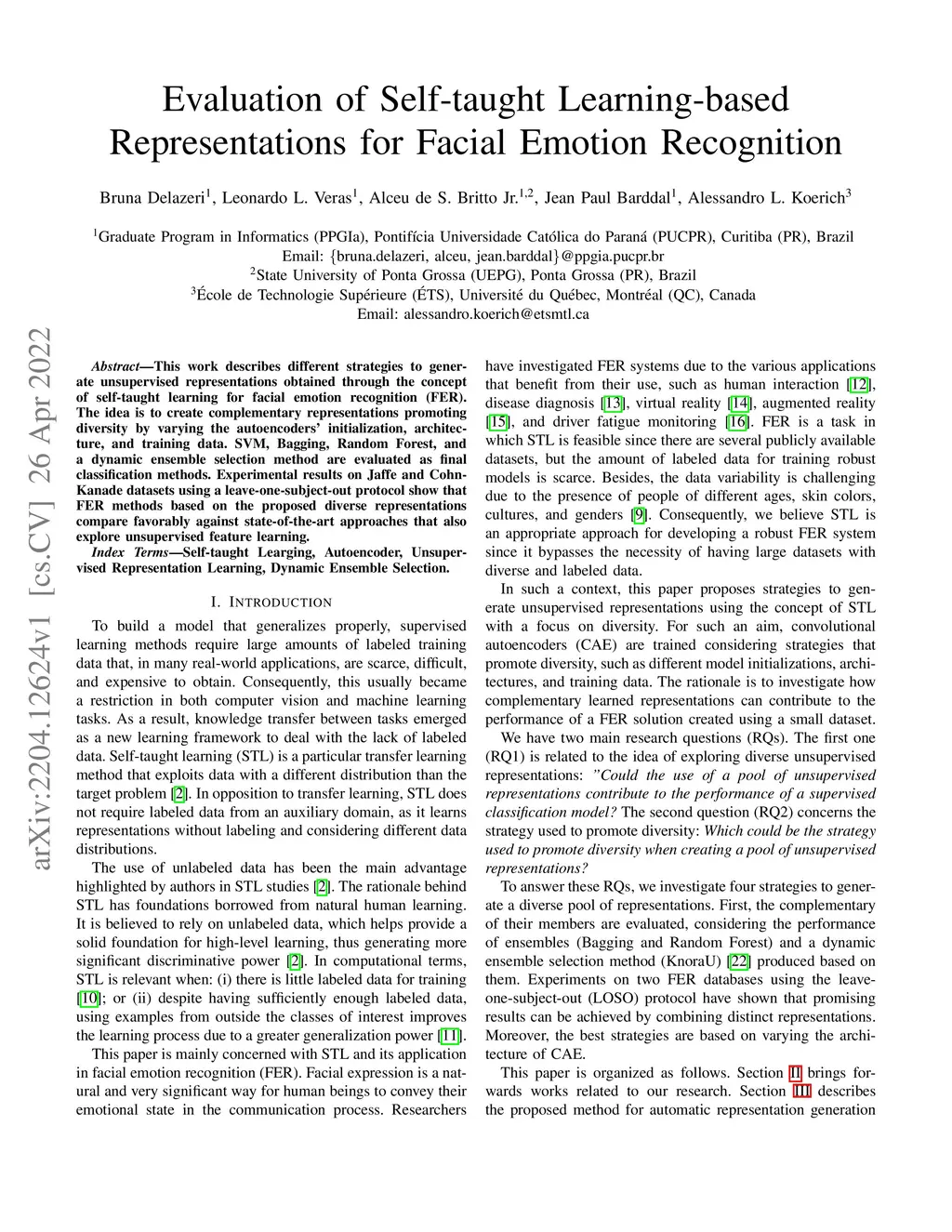 Evaluation of Self-taught Learning-based Representations for Facial