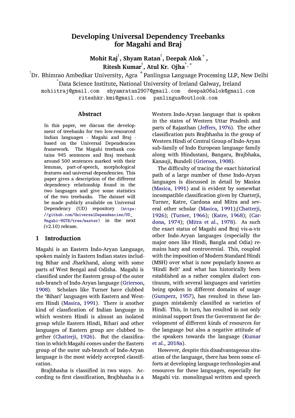 Developing Universal Dependency Treebanks for Magahi and Braj