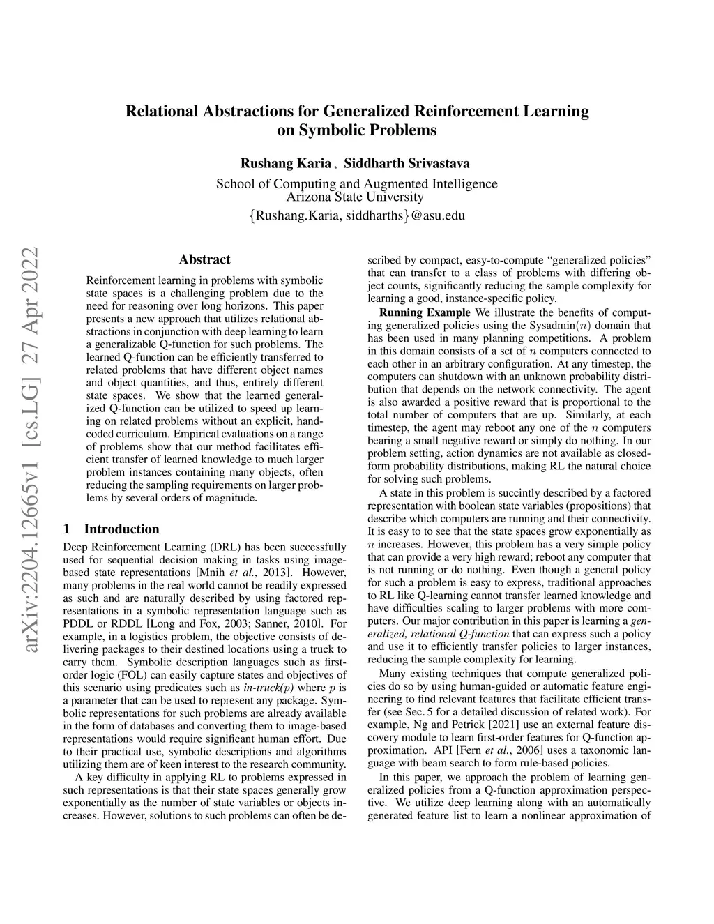 Relational Abstractions for Generalized Reinforcement Learning on