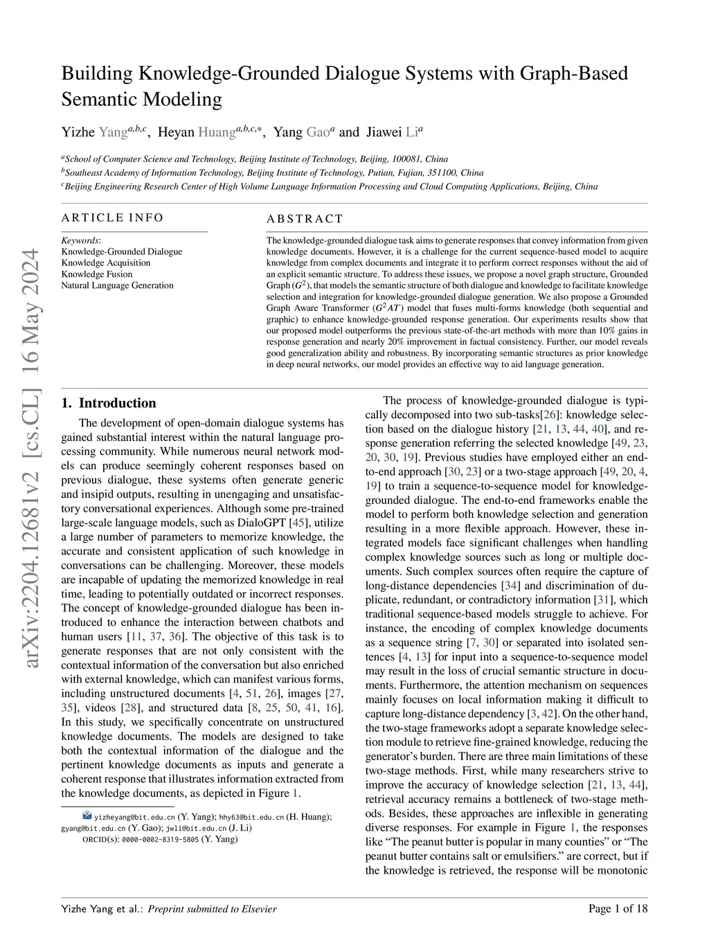 Building Knowledge-Grounded Dialogue Systems with Graph-Based Semantic