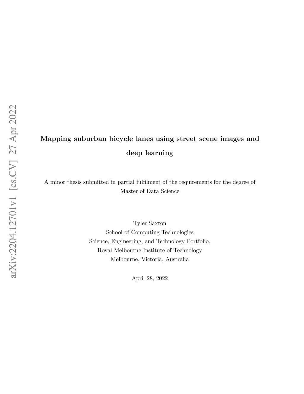 On-road bicycle lanes improve safety for cyclists, and encourage participation in cycling for active transport and recreation. With many local authorities responsible for portions of the infrastructure, official maps and datasets of bicycle lanes may be out-of-date and incomplete. Even "crowdsourced" databases may have significant gaps, especially outside popular metropolitan areas. This thesis presents a method to create a map of bicycle lanes in a survey area by taking sample street scene images from each road, and then applying a deep learning model that has been trained to recognise bicycle lane symbols. The list of coordinates where bicycle lane markings are detected is then correlated to geospatial data about the road network to record bicycle lane routes. The method was applied to successfully build a map for a survey area in the outer suburbs of Melbourne. It was able to identify bicycle lanes not previously recorded in the official state government dataset, OpenStreetMap, or the "biking" layer of Google Maps.