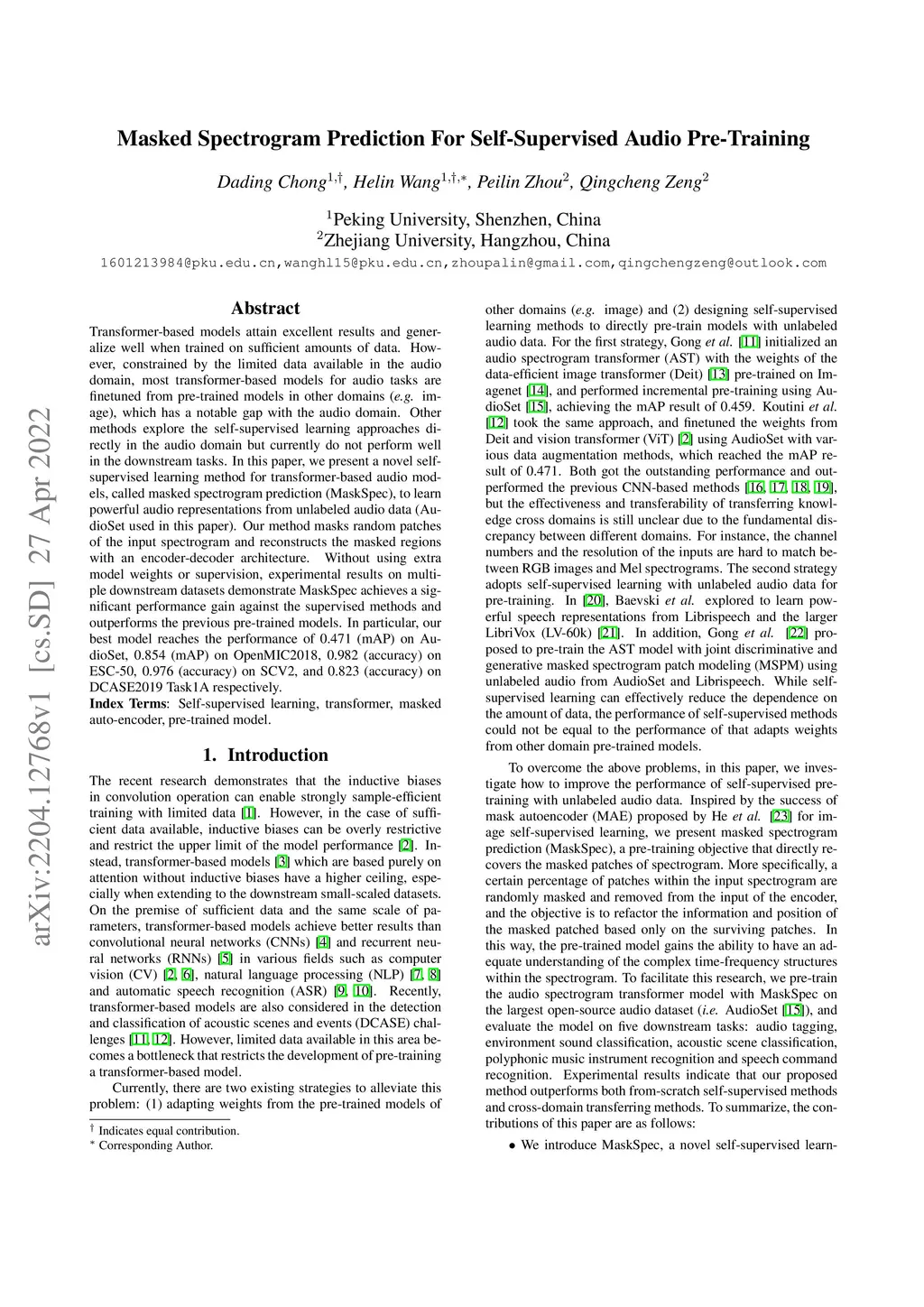 Masked Spectrogram Prediction For Self-Supervised Audio Pre-Training