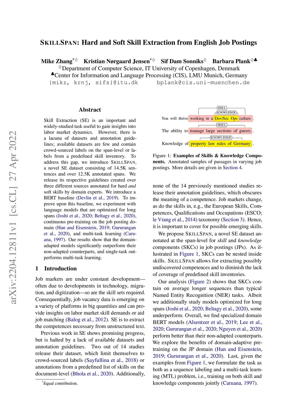 SkillSpan: Hard and Soft Skill Extraction from English Job Postings