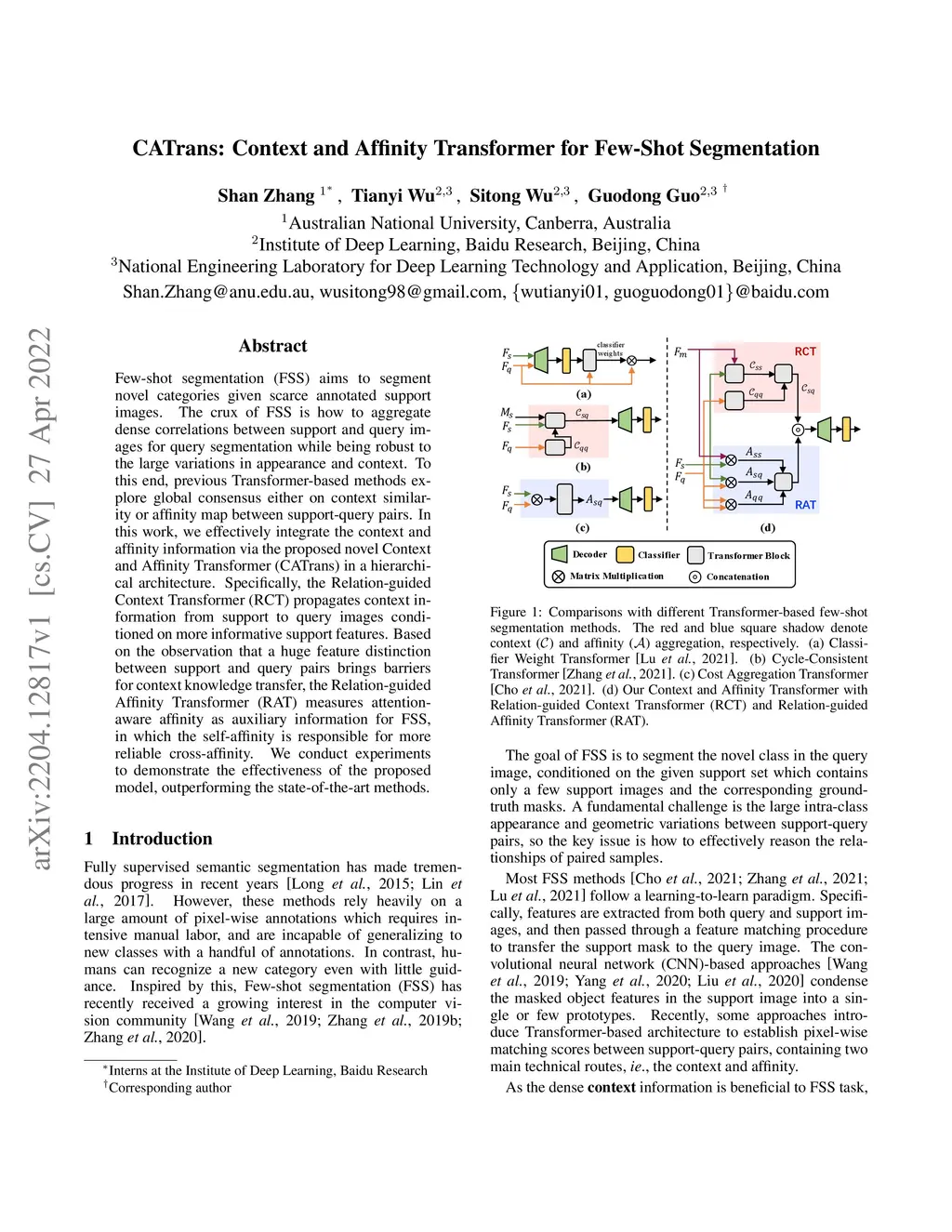 CATrans: Context and Affinity Transformer for Few-Shot Segmentation