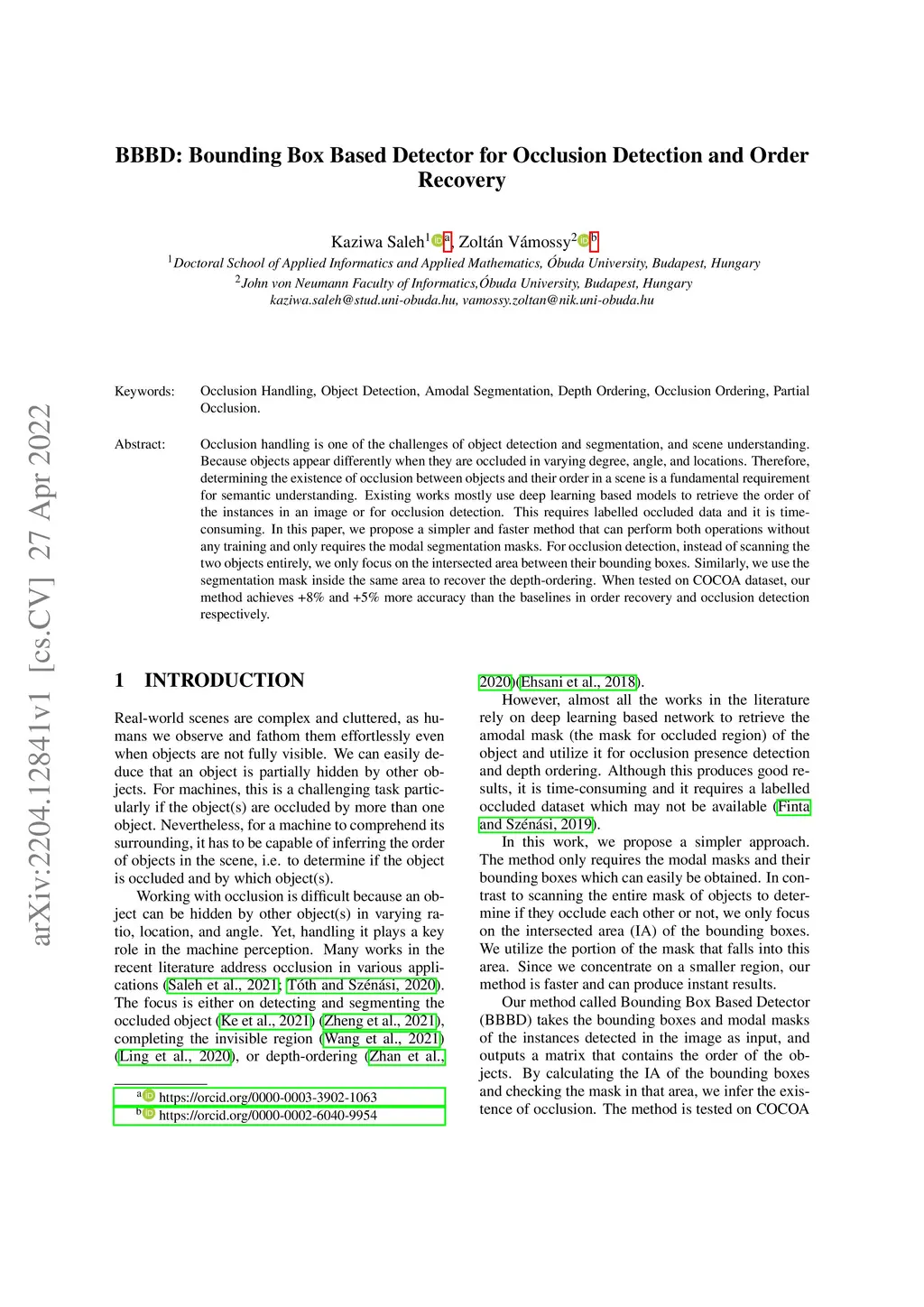 BBBD: Bounding Box Based Detector for Occlusion Detection and Order
