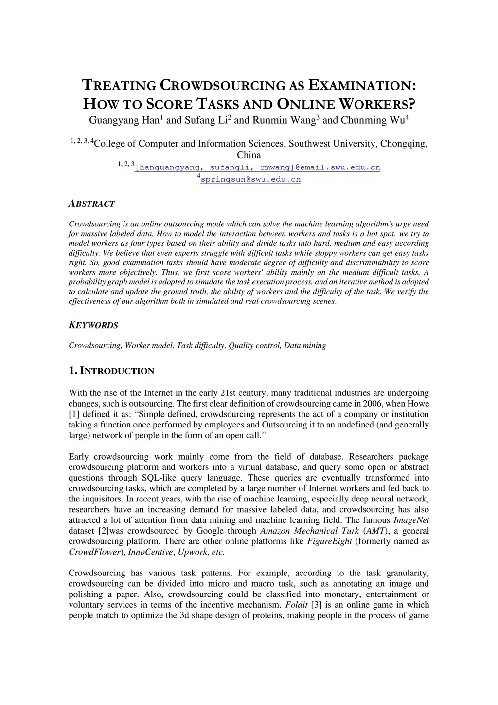 Treating Crowdsourcing as Examination: How to Score Tasks and Online