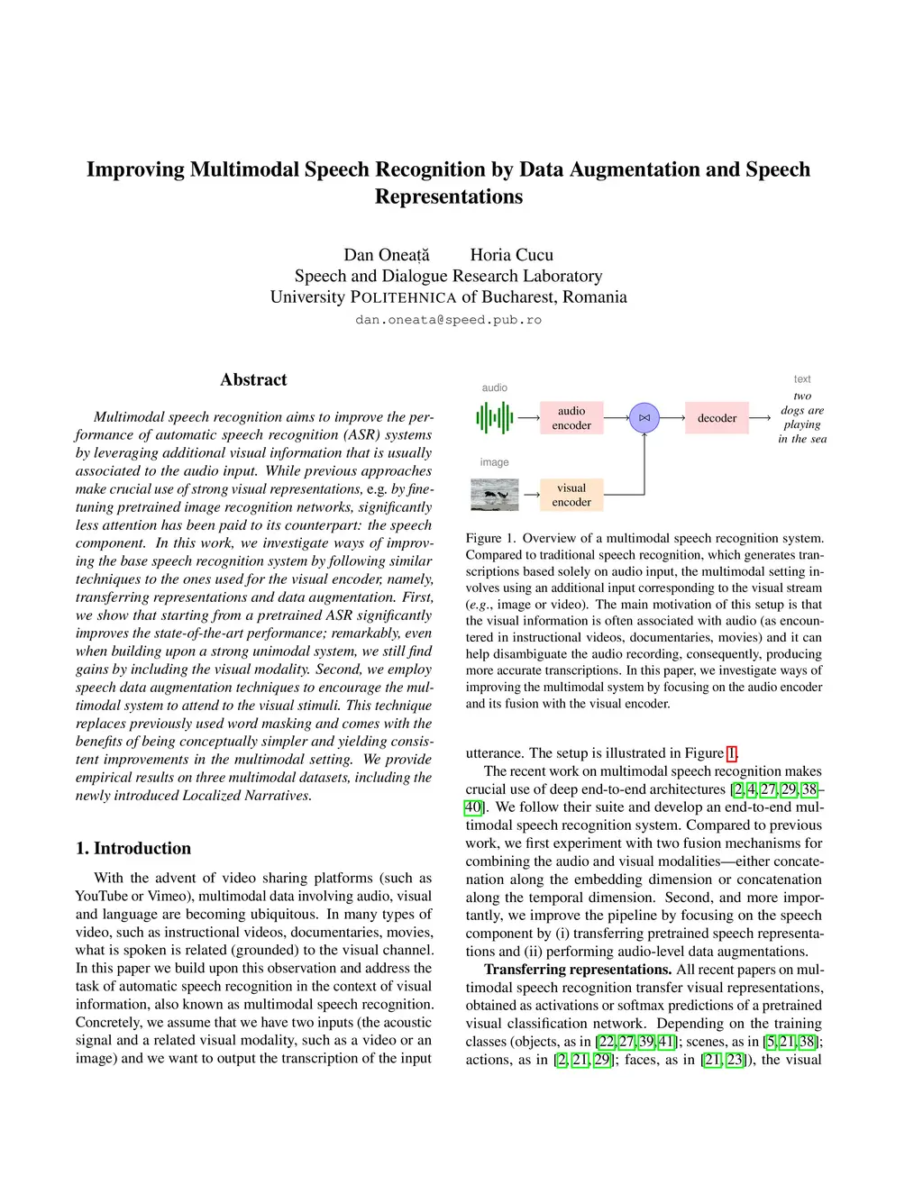 Improving Multimodal Speech Recognition by Data Augmentation and Speech