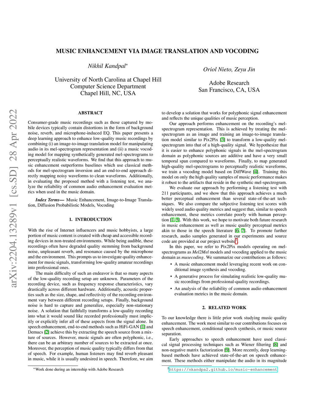 Music Enhancement via Image Translation and Vocoding