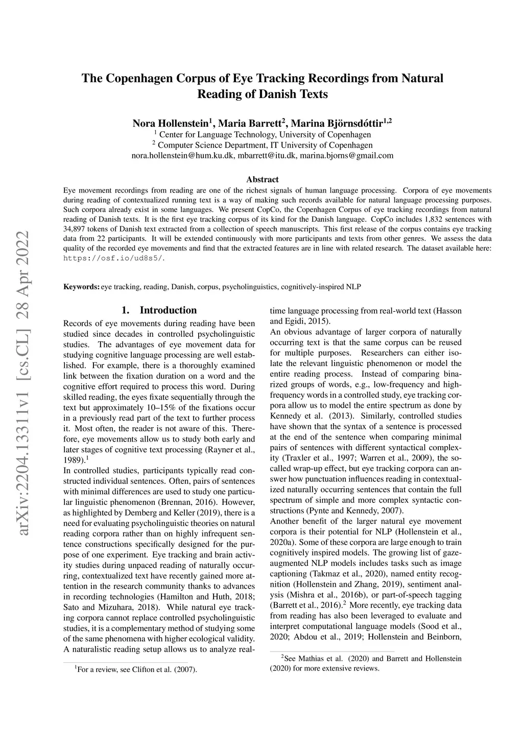 The Copenhagen Corpus of Eye Tracking Recordings from Natural Reading of
