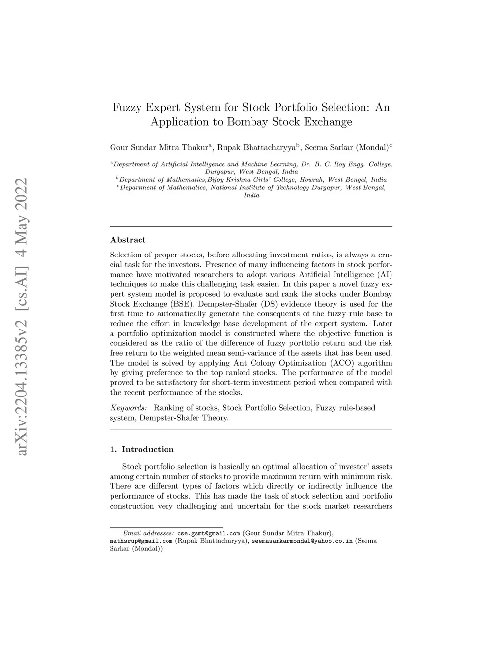 Fuzzy Expert System for Stock Portfolio Selection: An Application to