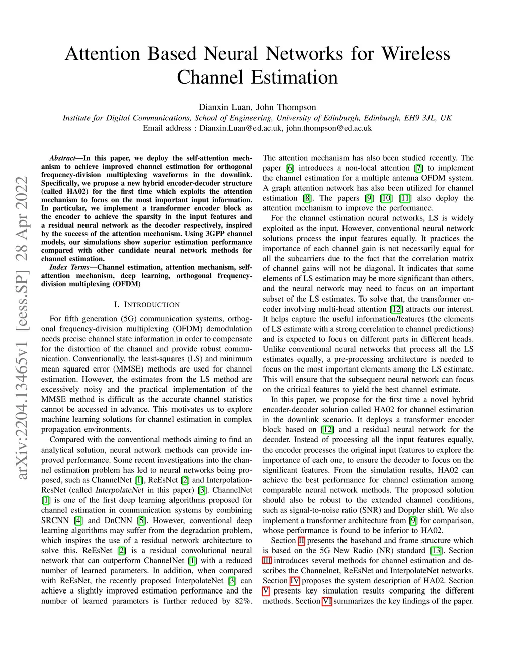 In this paper, we deploy the self-attention mechanism to achieve improved channel estimation for orthogonal frequency-division multiplexing waveforms in the downlink. Specifically, we propose a new hybrid encoder-decoder structure (called HA02) for the first time which exploits the attention mechanism to focus on the most important input information. In particular, we implement a transformer encoder block as the encoder to achieve the sparsity in the input features and a residual neural network as the decoder respectively, inspired by the success of the attention mechanism. Using 3GPP channel models, our simulations show superior estimation performance compared with other candidate neural network methods for channel estimation.