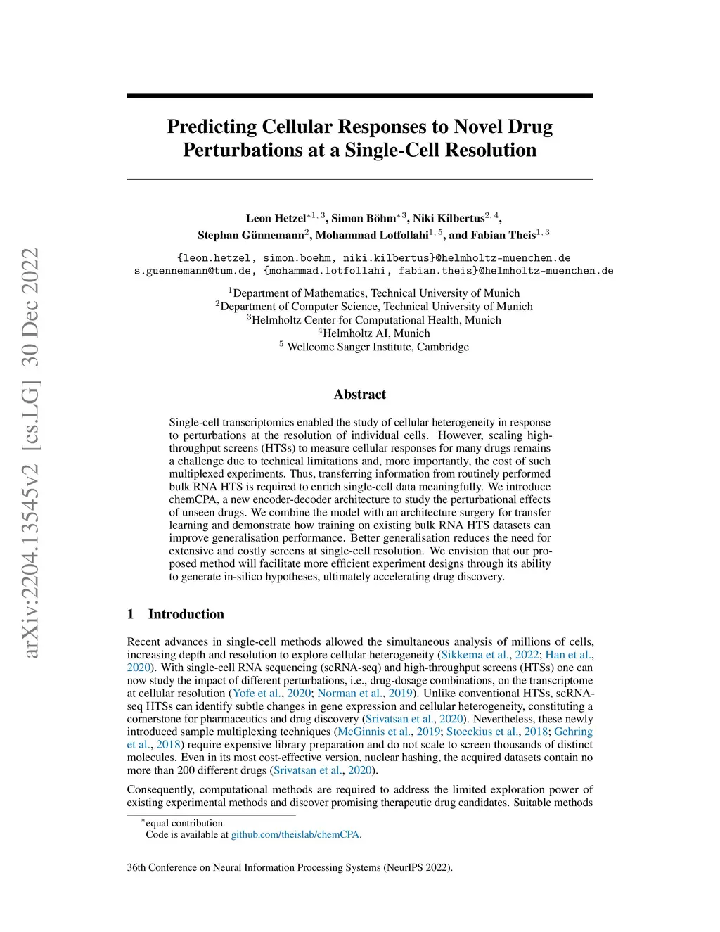 Single-cell transcriptomics enabled the study of cellular heterogeneity in response to perturbations at the resolution of individual cells. However, scaling high-throughput screens (HTSs) to measure cellular responses for many drugs remains a challenge due to technical limitations and, more importantly, the cost of such multiplexed experiments. Thus, transferring information from routinely performed bulk RNA HTS is required to enrich single-cell data meaningfully. We introduce chemCPA, a new encoder-decoder architecture to study the perturbational effects of unseen drugs. We combine the model with an architecture surgery for transfer learning and demonstrate how training on existing bulk RNA HTS datasets can improve generalisation performance. Better generalisation reduces the need for extensive and costly screens at single-cell resolution. We envision that our proposed method will facilitate more efficient experiment designs through its ability to generate in-silico hypotheses, ultimately accelerating drug discovery.