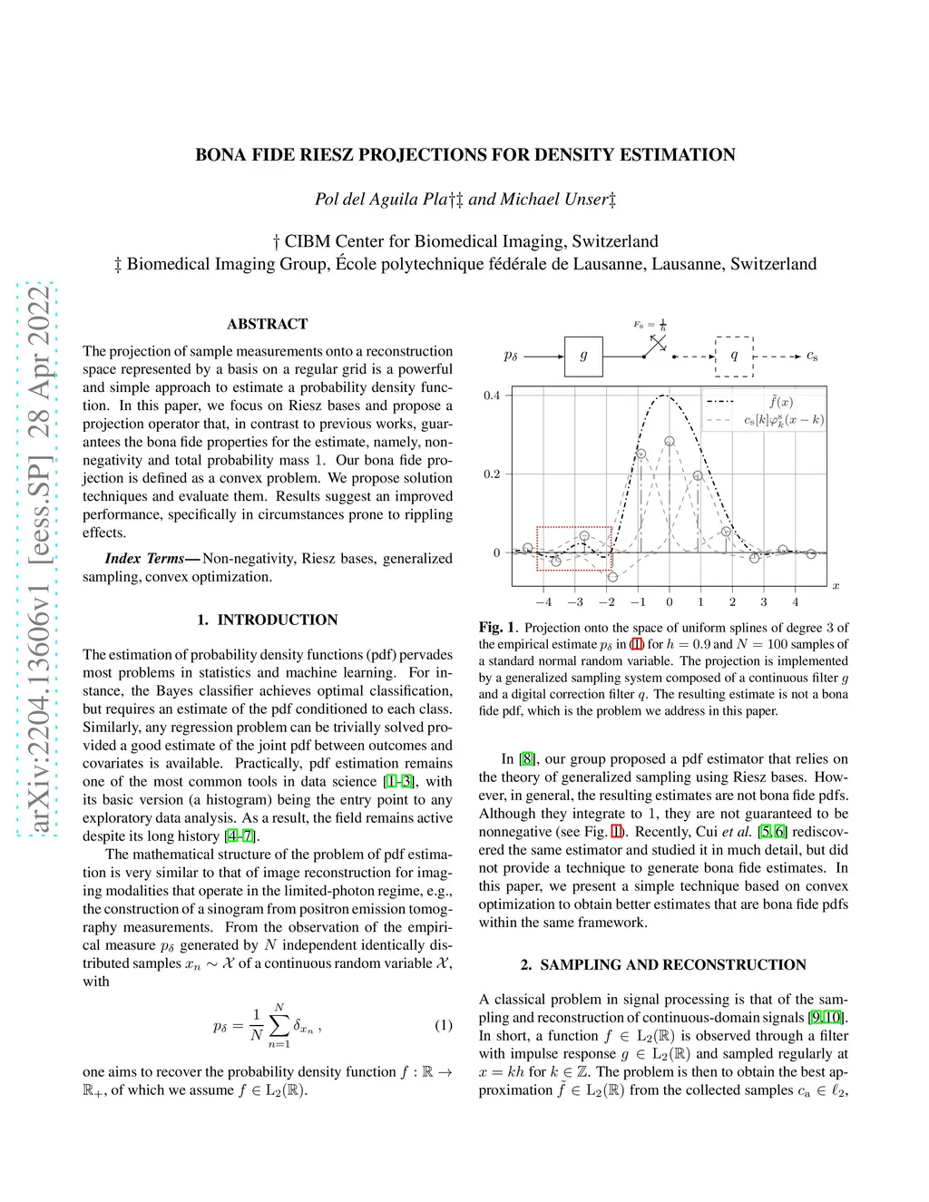 The projection of sample measurements onto a reconstruction space represented by a basis on a regular grid is a powerful and simple approach to estimate a probability density function. In this paper, we focus on Riesz bases and propose a projection operator that, in contrast to previous works, guarantees the bona fide properties for the estimate, namely, non-negativity and total probability mass . Our bona fide projection is defined as a convex problem. We propose solution techniques and evaluate them. Results suggest an improved performance, specifically in circumstances prone to rippling effects.