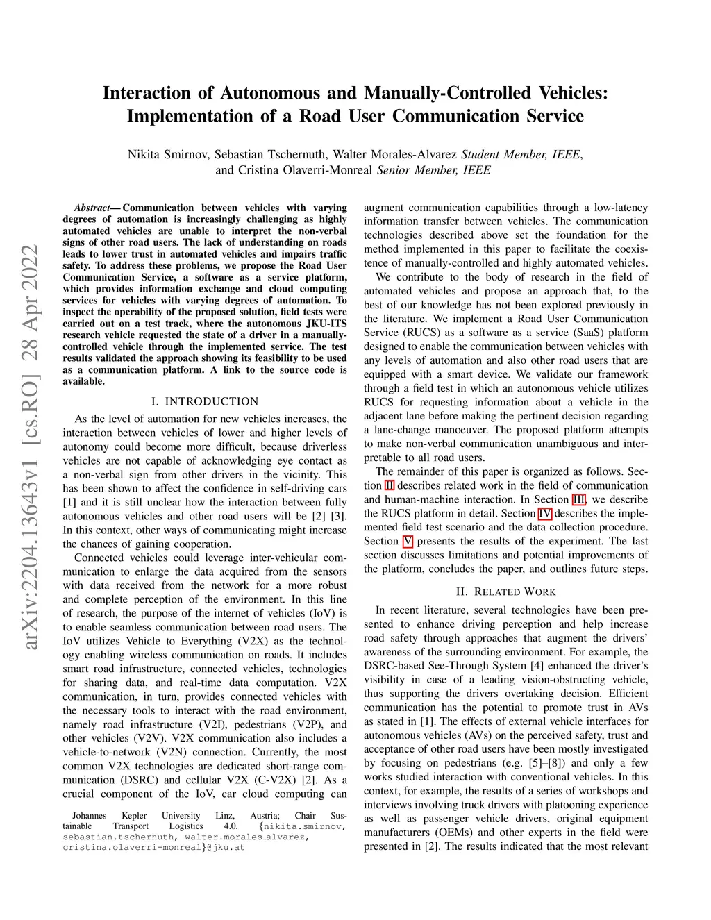 Communication between vehicles with varying degrees of automation is increasingly challenging as highly automated vehicles are unable to interpret the non-verbal signs of other road users. The lack of understanding on roads leads to lower trust in automated vehicles and impairs traffic safety. To address these problems, we propose the Road User Communication Service, a software as a service platform, which provides information exchange and cloud computing services for vehicles with varying degrees of automation. To inspect the operability of the proposed solution, field tests were carried out on a test track, where the autonomous JKU-ITS research vehicle requested the state of a driver in a manually-controlled vehicle through the implemented service. The test results validated the approach showing its feasibility to be used as a communication platform. A link to the source code is available.