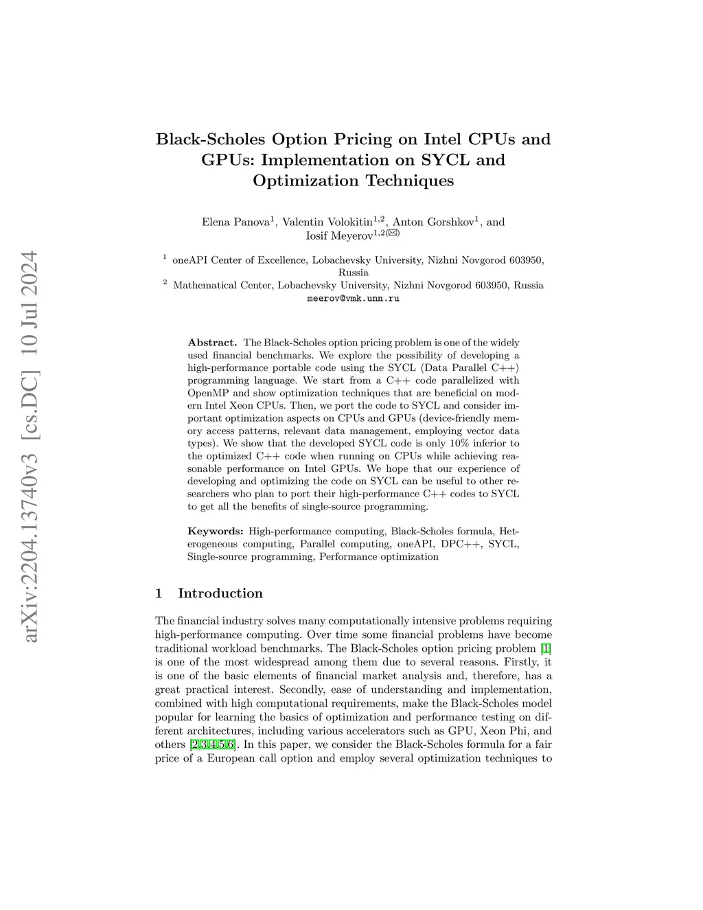 Black-Scholes Option Pricing on Intel CPUs and GPUs: Implementation on
