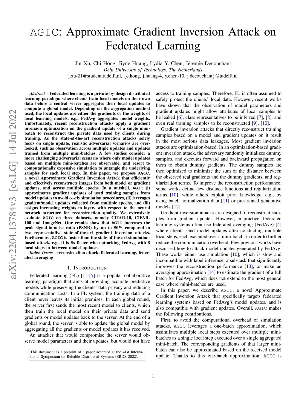 AGIC: Approximate Gradient Inversion Attack on Federated Learning