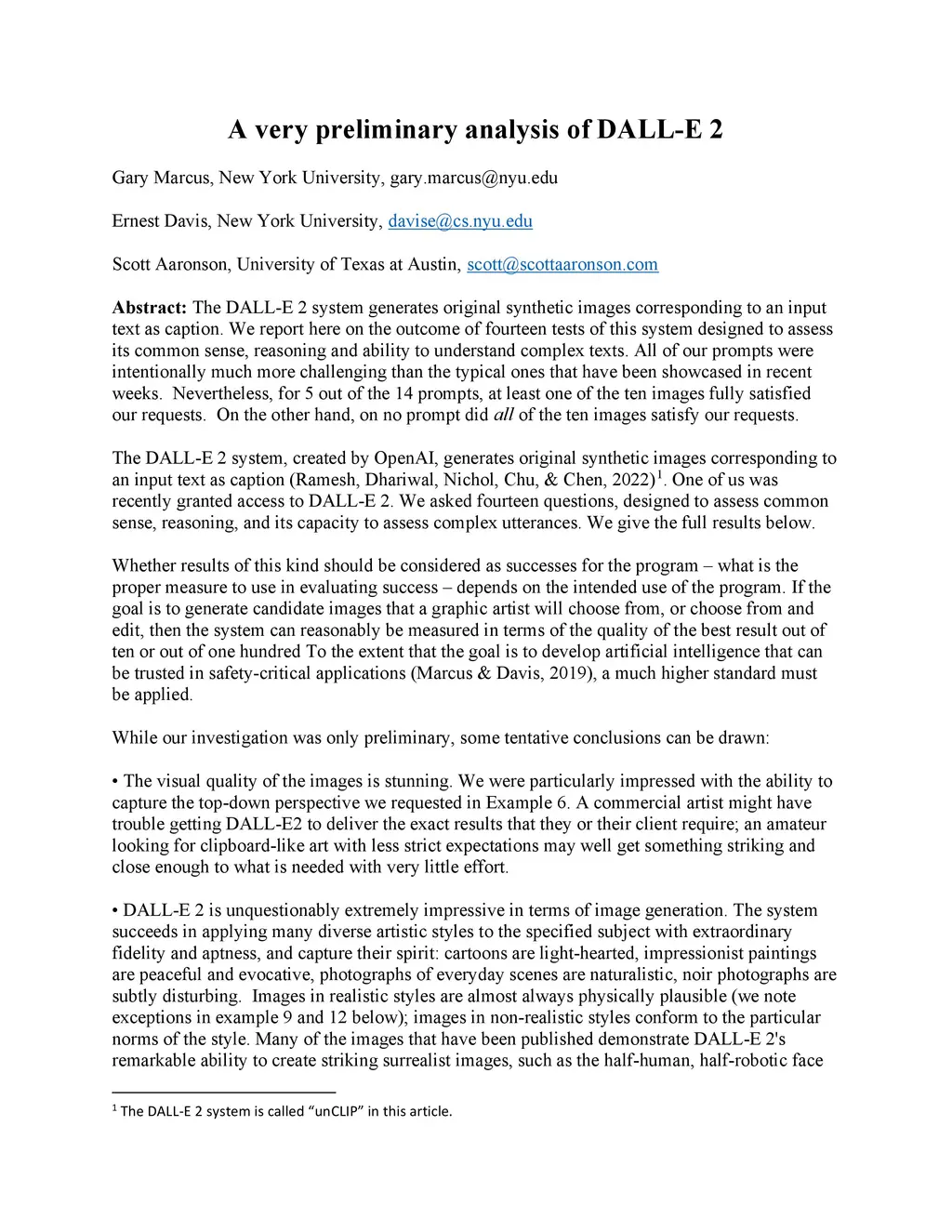 A very preliminary analysis of DALL-E 2
