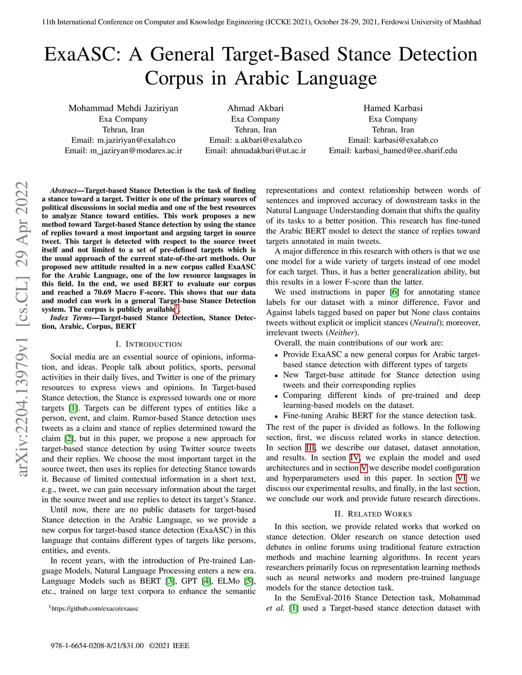 ExaASC: A General Target-Based Stance Detection Corpus in Arabic