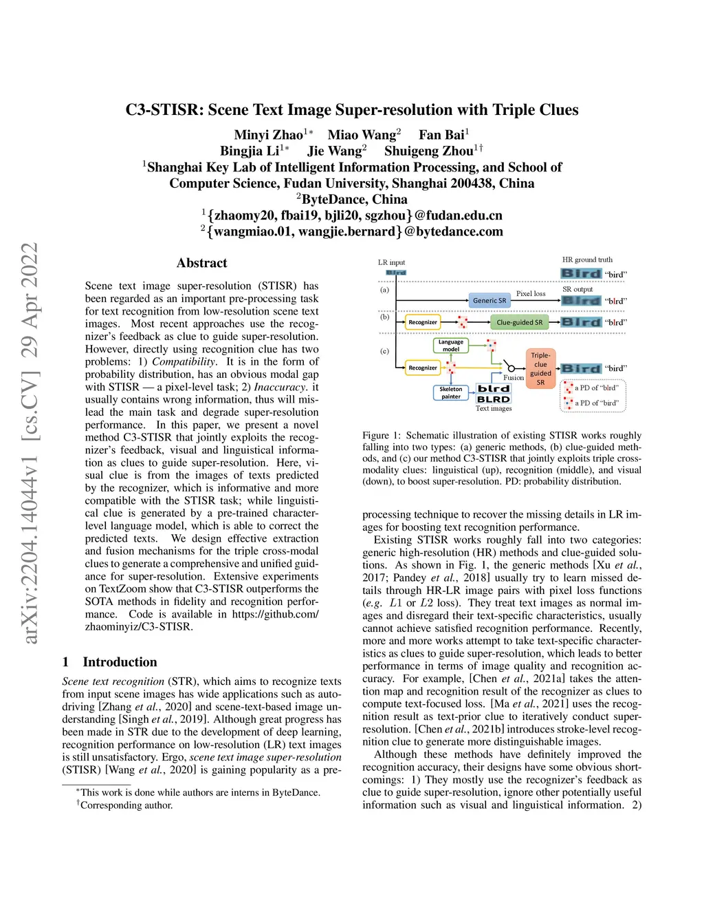 C3-STISR: Scene Text Image Super-resolution with Triple Clues