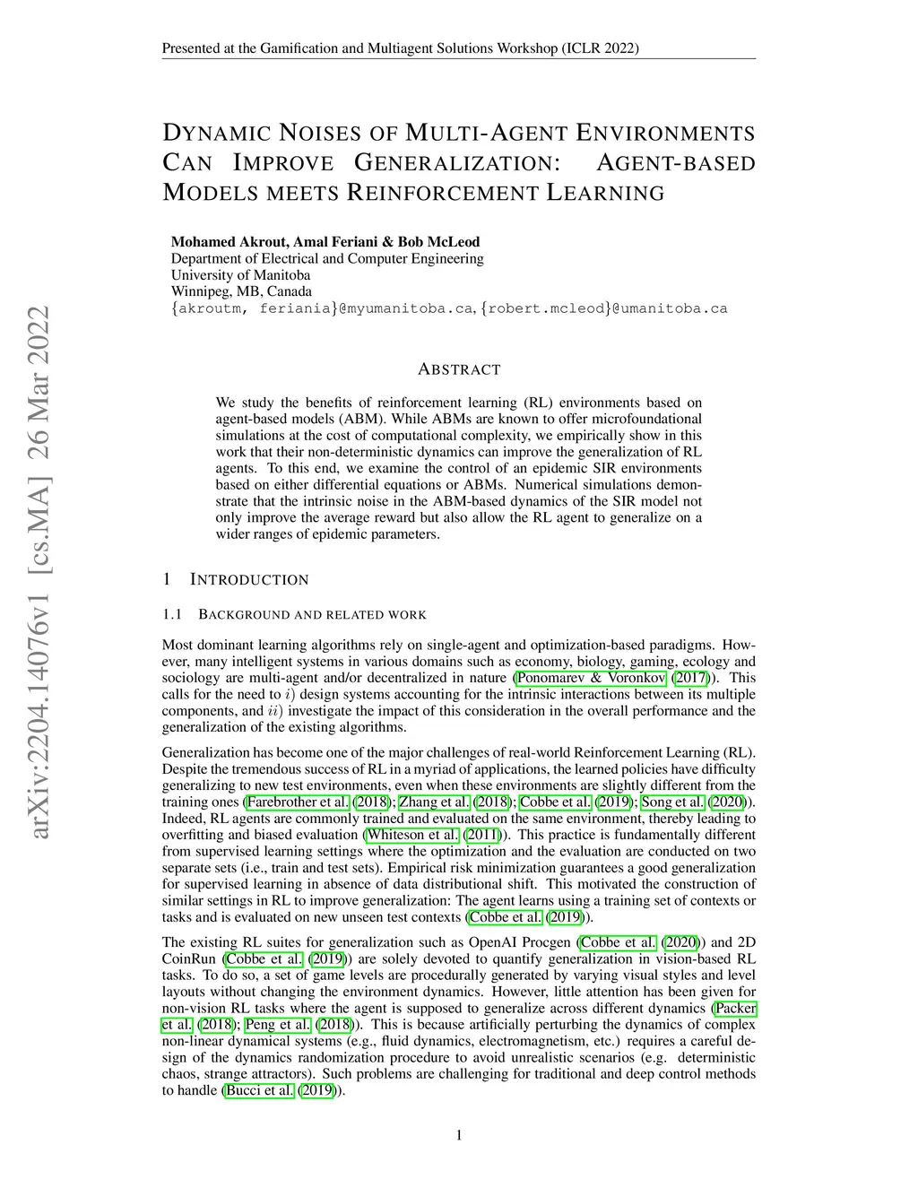 We study the benefits of reinforcement learning (RL) environments based on agent-based models (ABM). While ABMs are known to offer microfoundational simulations at the cost of computational complexity, we empirically show in this work that their non-deterministic dynamics can improve the generalization of RL agents. To this end, we examine the control of an epidemic SIR environments based on either differential equations or ABMs. Numerical simulations demonstrate that the intrinsic noise in the ABM-based dynamics of the SIR model not only improve the average reward but also allow the RL agent to generalize on a wider ranges of epidemic parameters.