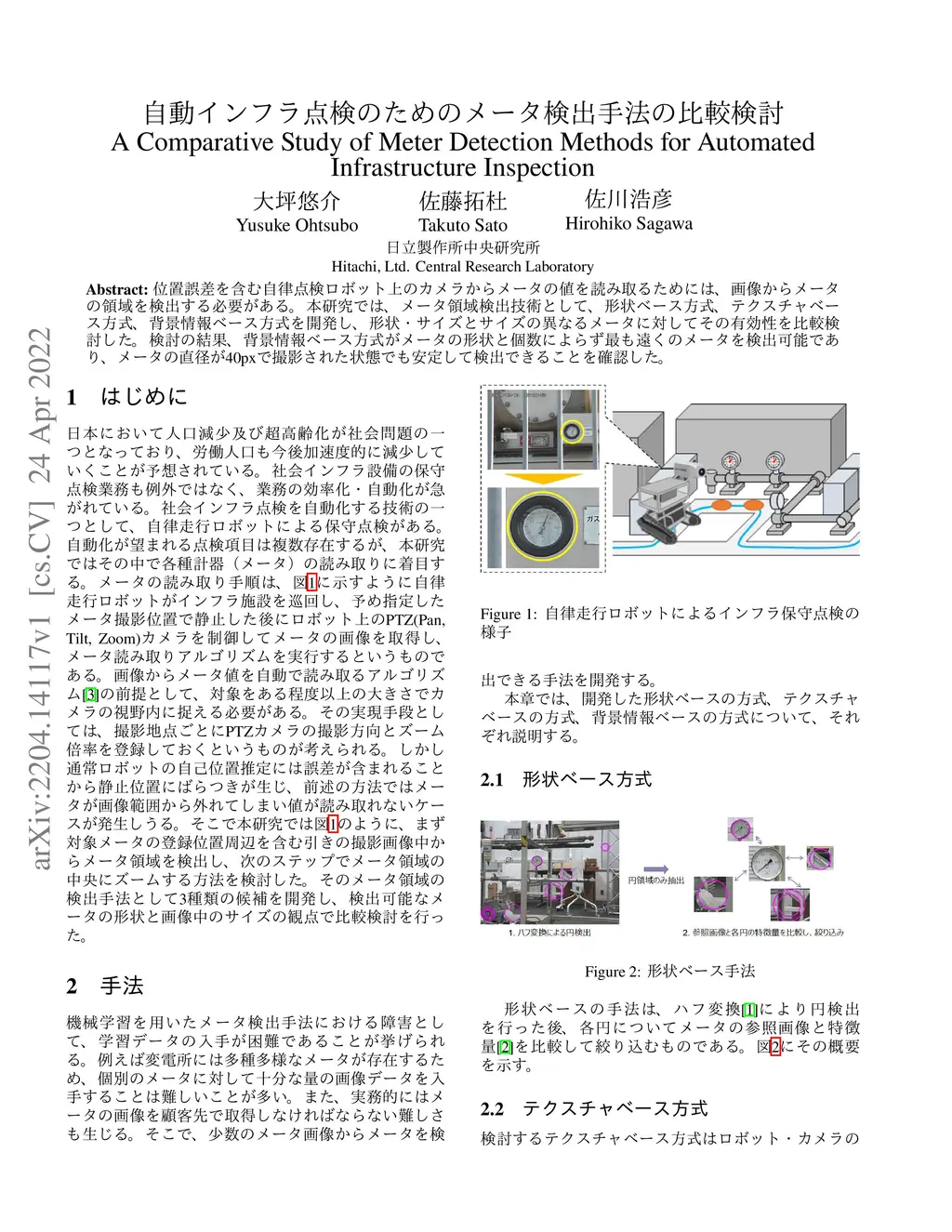 In order to read meter values from a camera on an autonomous inspection robot with positional errors, it is necessary to detect meter regions from the image. In this study, we developed shape-based, texture-based, and background information-based methods as meter area detection techniques and compared their effectiveness for meters of different shapes and sizes. As a result, we confirmed that the background information-based method can detect the farthest meters regardless of the shape and number of meters, and can stably detect meters with a diameter of 40px.