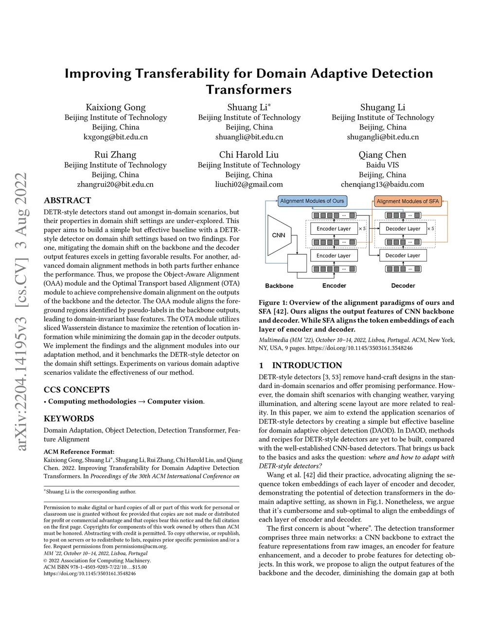 DETR-style detectors stand out amongst in-domain scenarios, but their properties in domain shift settings are under-explored. This paper aims to build a simple but effective baseline with a DETR-style detector on domain shift settings based on two findings. For one, mitigating the domain shift on the backbone and the decoder output features excels in getting favorable results. For another, advanced domain alignment methods in both parts further enhance the performance. Thus, we propose the Object-Aware Alignment (OAA) module and the Optimal Transport based Alignment (OTA) module to achieve comprehensive domain alignment on the outputs of the backbone and the detector. The OAA module aligns the foreground regions identified by pseudo-labels in the backbone outputs, leading to domain-invariant based features. The OTA module utilizes sliced Wasserstein distance to maximize the retention of location information while minimizing the domain gap in the decoder outputs. We implement the findings and the alignment modules into our adaptation method, and it benchmarks the DETR-style detector on the domain shift settings. Experiments on various domain adaptive scenarios validate the effectiveness of our method.