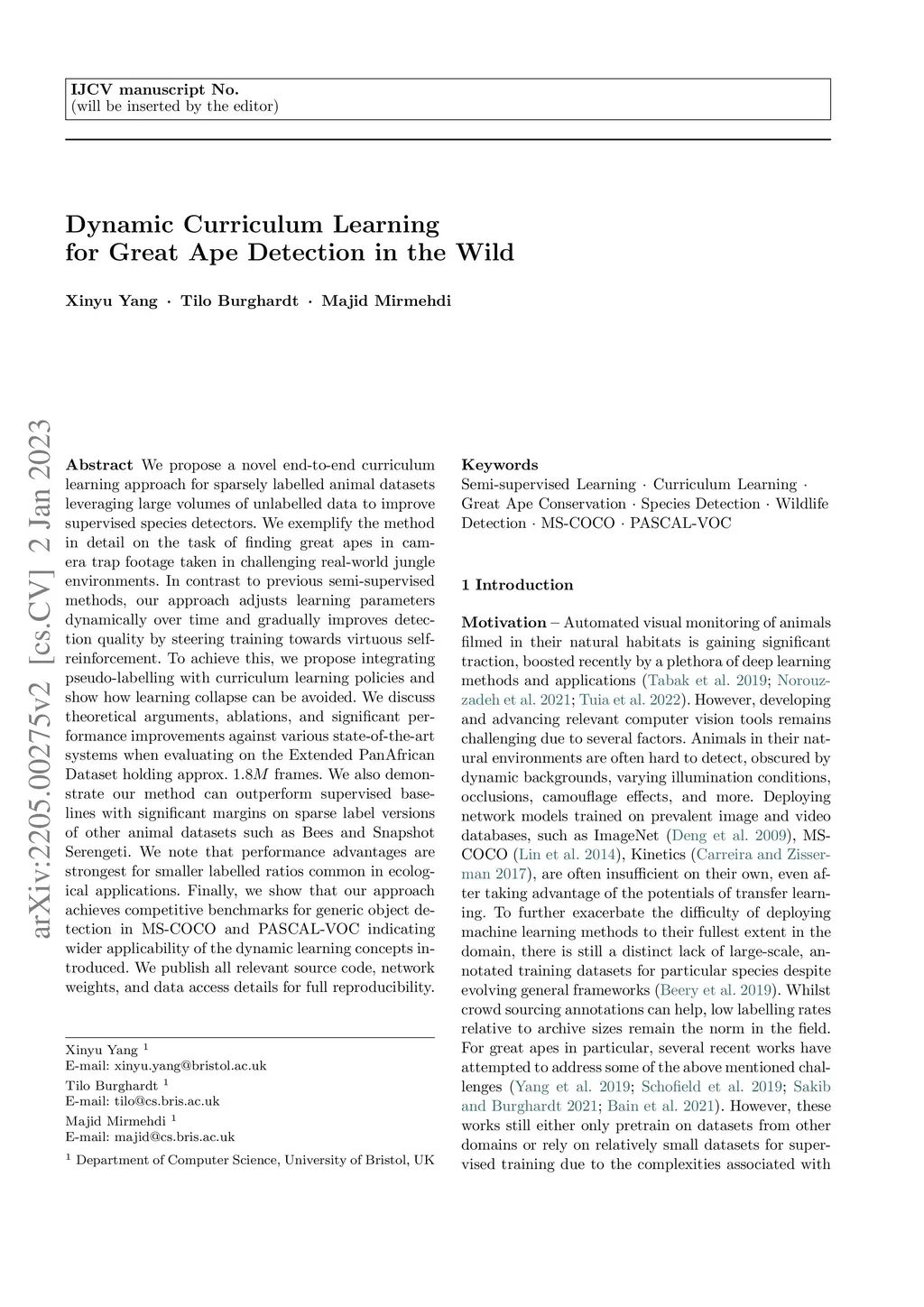Dynamic Curriculum Learning for Great Ape Detection in the Wild