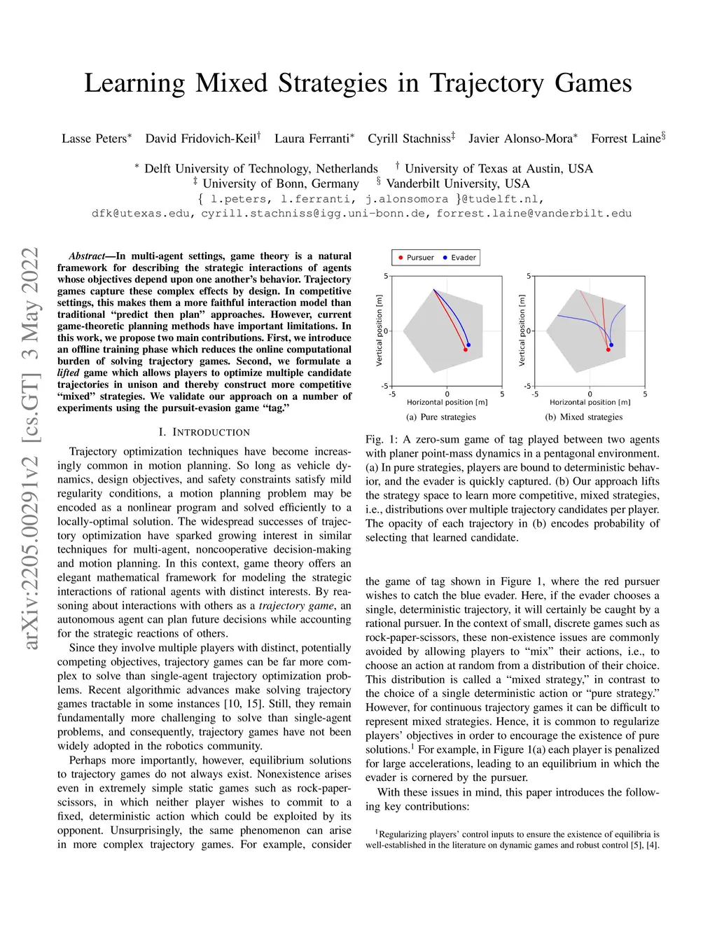 In multi-agent settings, game theory is a natural framework for describing the strategic interactions of agents whose objectives depend upon one another's behavior. Trajectory games capture these complex effects by design. In competitive settings, this makes them a more faithful interaction model than traditional "predict then plan" approaches. However, current game-theoretic planning methods have important limitations. In this work, we propose two main contributions. First, we introduce an offline training phase which reduces the online computational burden of solving trajectory games. Second, we formulate a lifted game which allows players to optimize multiple candidate trajectories in unison and thereby construct more competitive "mixed" strategies. We validate our approach on a number of experiments using the pursuit-evasion game "tag."