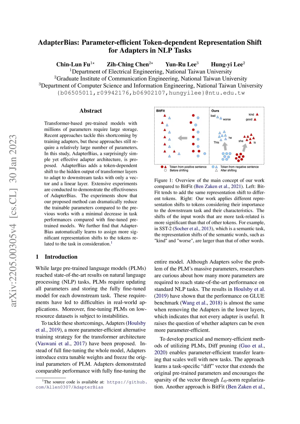 AdapterBias: Parameter-efficient Token-dependent Representation Shift