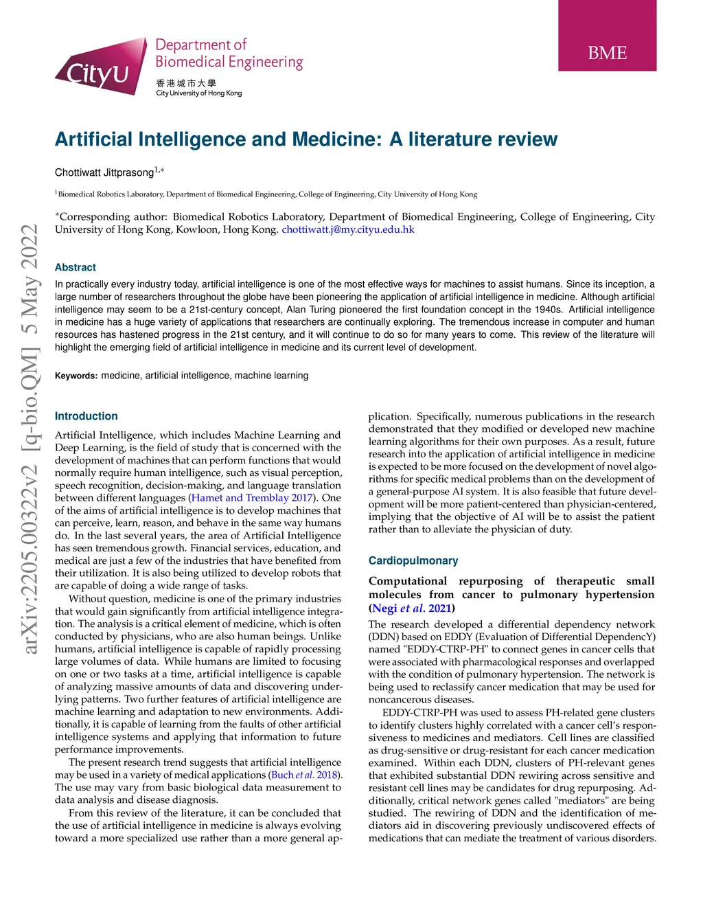 In practically every industry today, artificial intelligence is one of the most effective ways for machines to assist humans. Since its inception, a large number of researchers throughout the globe have been pioneering the application of artificial intelligence in medicine. Although artificial intelligence may seem to be a 21st-century concept, Alan Turing pioneered the first foundation concept in the 1940s. Artificial intelligence in medicine has a huge variety of applications that researchers are continually exploring. The tremendous increase in computer and human resources has hastened progress in the 21st century, and it will continue to do so for many years to come. This review of the literature will highlight the emerging field of artificial intelligence in medicine and its current level of development.