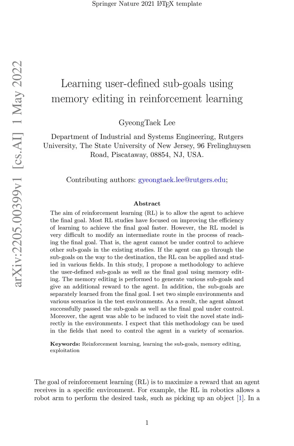 The aim of reinforcement learning (RL) is to allow the agent to achieve the final goal. Most RL studies have focused on improving the efficiency of learning to achieve the final goal faster. However, the RL model is very difficult to modify an intermediate route in the process of reaching the final goal. That is, the agent cannot be under control to achieve other sub-goals in the existing studies. If the agent can go through the sub-goals on the way to the destination, the RL can be applied and studied in various fields. In this study, I propose a methodology to achieve the user-defined sub-goals as well as the final goal using memory editing. The memory editing is performed to generate various sub-goals and give an additional reward to the agent. In addition, the sub-goals are separately learned from the final goal. I set two simple environments and various scenarios in the test environments. As a result, the agent almost successfully passed the sub-goals as well as the final goal under control. Moreover, the agent was able to be induced to visit the novel state indirectly in the environments. I expect that this methodology can be used in the fields that need to control the agent in a variety of scenarios.