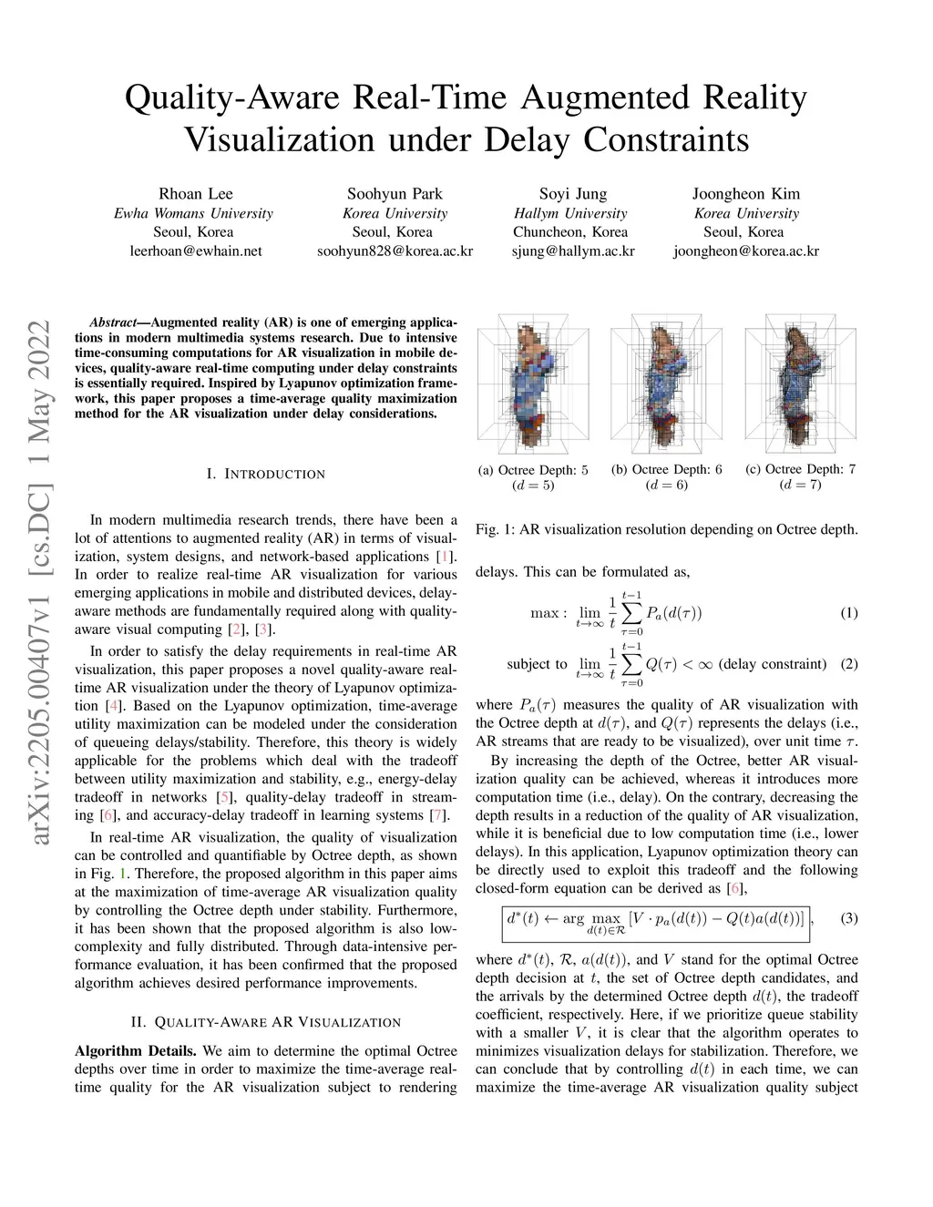 Augmented reality (AR) is one of emerging applications in modern multimedia systems research. Due to intensive time-consuming computations for AR visualization in mobile devices, quality-aware real-time computing under delay constraints is essentially required. Inspired by Lyapunov optimization framework, this paper proposes a time-average quality maximization method for the AR visualization under delay considerations.