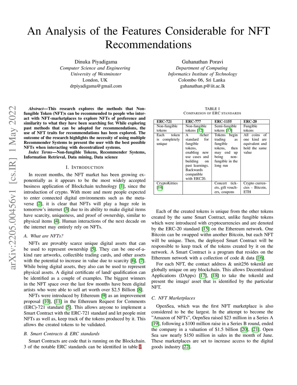 This research explores the methods that NFTs can be recommended to people who interact with NFT-marketplaces to explore NFTs of preference and similarity to what they have been searching for. While exploring past methods that can be adopted for recommendations, the use of NFT traits for recommendations has been explored. The outcome of the research highlights the necessity of using multiple Recommender Systems to present the user with the best possible NFTs when interacting with decentralized systems.