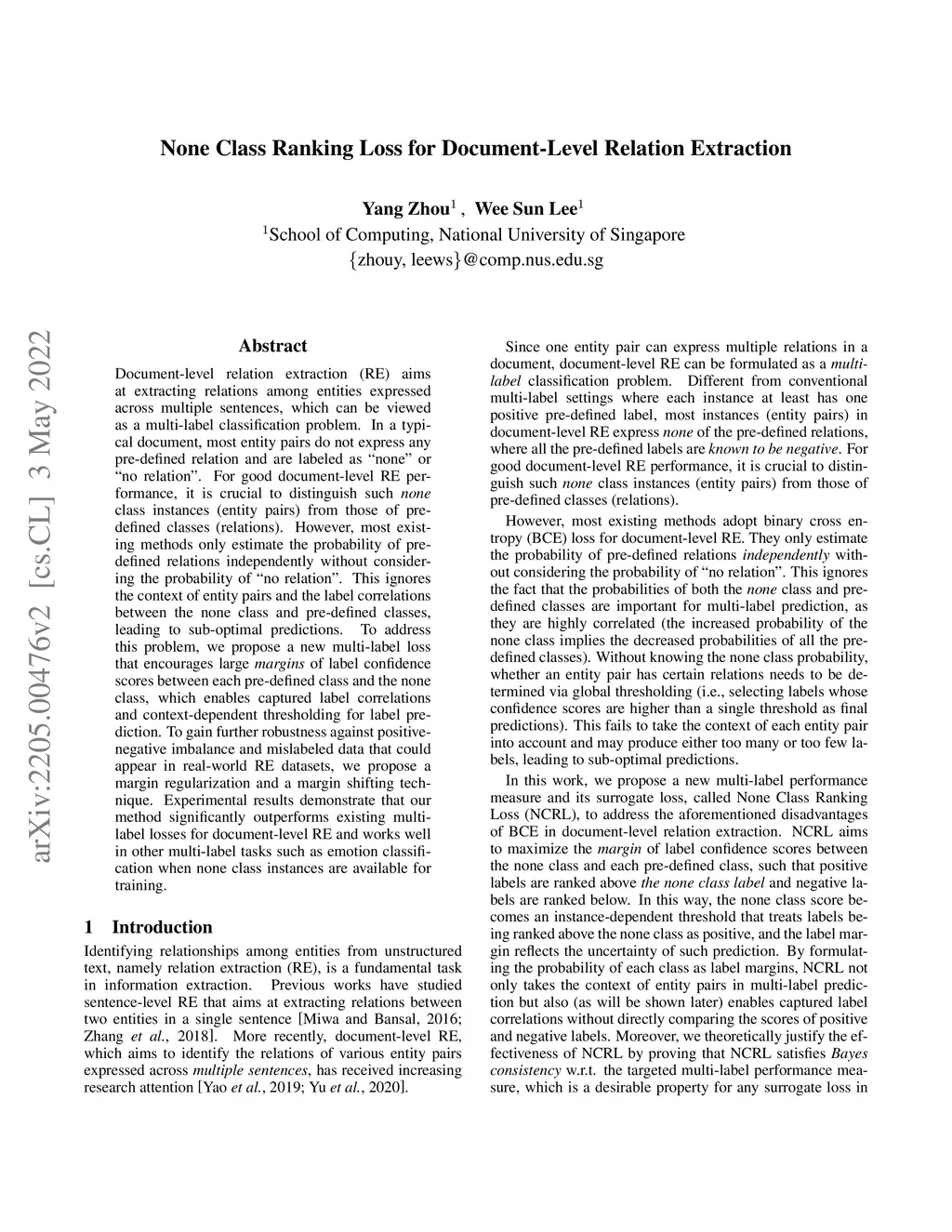 None Class Ranking Loss for Document-Level Relation Extraction